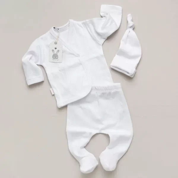 En algodón pima desagujado, diseñado para brindar máxima calidad y máxima suavidad al primer contacto con la piel de tu bebé. Este set es ideal para el día del recibimiento y los primeros momentos, pensado cuidadosamente para acompañar el inicio de la vida con la mayor delicadeza.